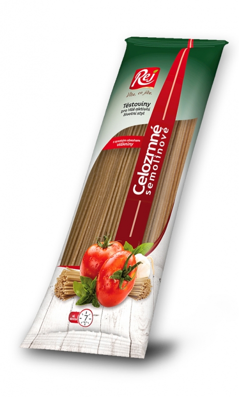 Semolinové těstoviny z celozrnné pšenice s vysokým obsahem vlákniny.